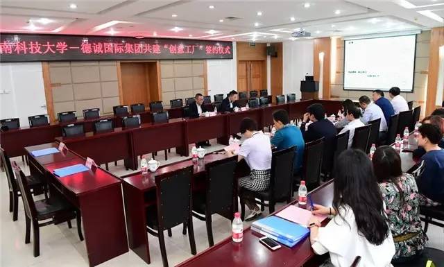 5月9日上午,德诚国际集团——西南科技大学共建创意工场签约典礼正在西南科技大学办公楼附201会议室举行。德诚国际集团董事长张连代表集团向母校捐赠500万元“德诚创意工场”基金。德诚国际集团总司理任庶,学校党委庄天慧,副校级调研员杨世源以及学校招就处、校团委、基建处、张连先生取杨世源签订了《西南科技大学—德诚国际集团意向合做书》!